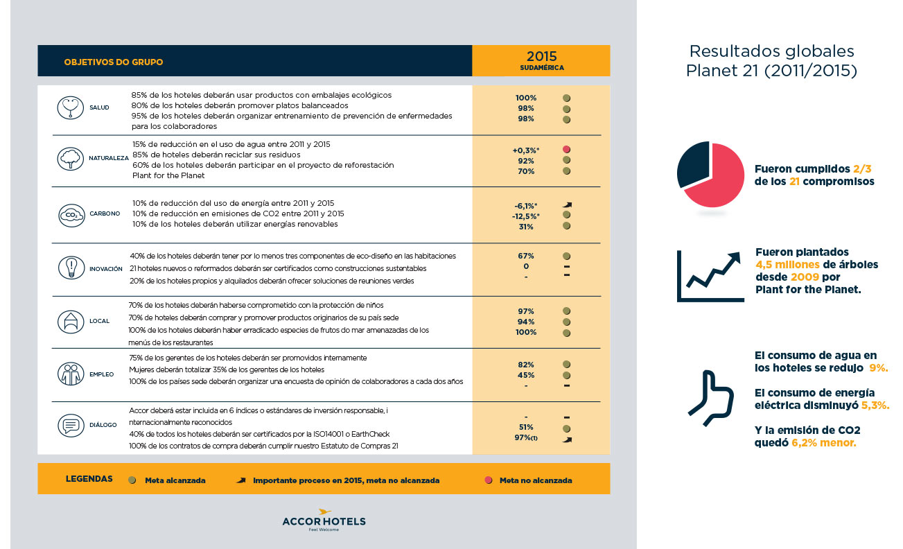 Cuando fue lanzado en 2011, Planet 21 estaba compuesto por siete pilares, 21 compromisos y metas globales que tenían de ser cumplidas por los hoteles hasta fines de 2015. El programa tenía como objetivo orientar el crecimiento de AccorHotels de forma sustentable, para reducir el impacto al medio ambiente y a las comunidades en donde la empresa actúa.