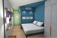 O design do quarto foi repensado para otimizar espaço e garantir que os ocupantes desfrutem do mesmo nível de conforto. Por isso, os antigos beliches serão substituídos por uma cama de casal e uma cama adicional embutida, equipada com o conceito Sweet Bed by ibis budget. Inteligente, o formato foi projetado de maneira flexível para facilitar o relaxamento e o movimento, podendo ser organizado de até dez maneiras diferentes.